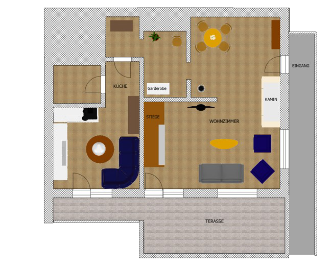 gemütliches Wohnzimmer mit SAT-TV & direktem Terrassenzugang