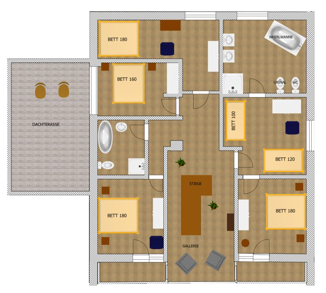 5 Schlafzimmer (1x große Terrasse, 2x Balkon)