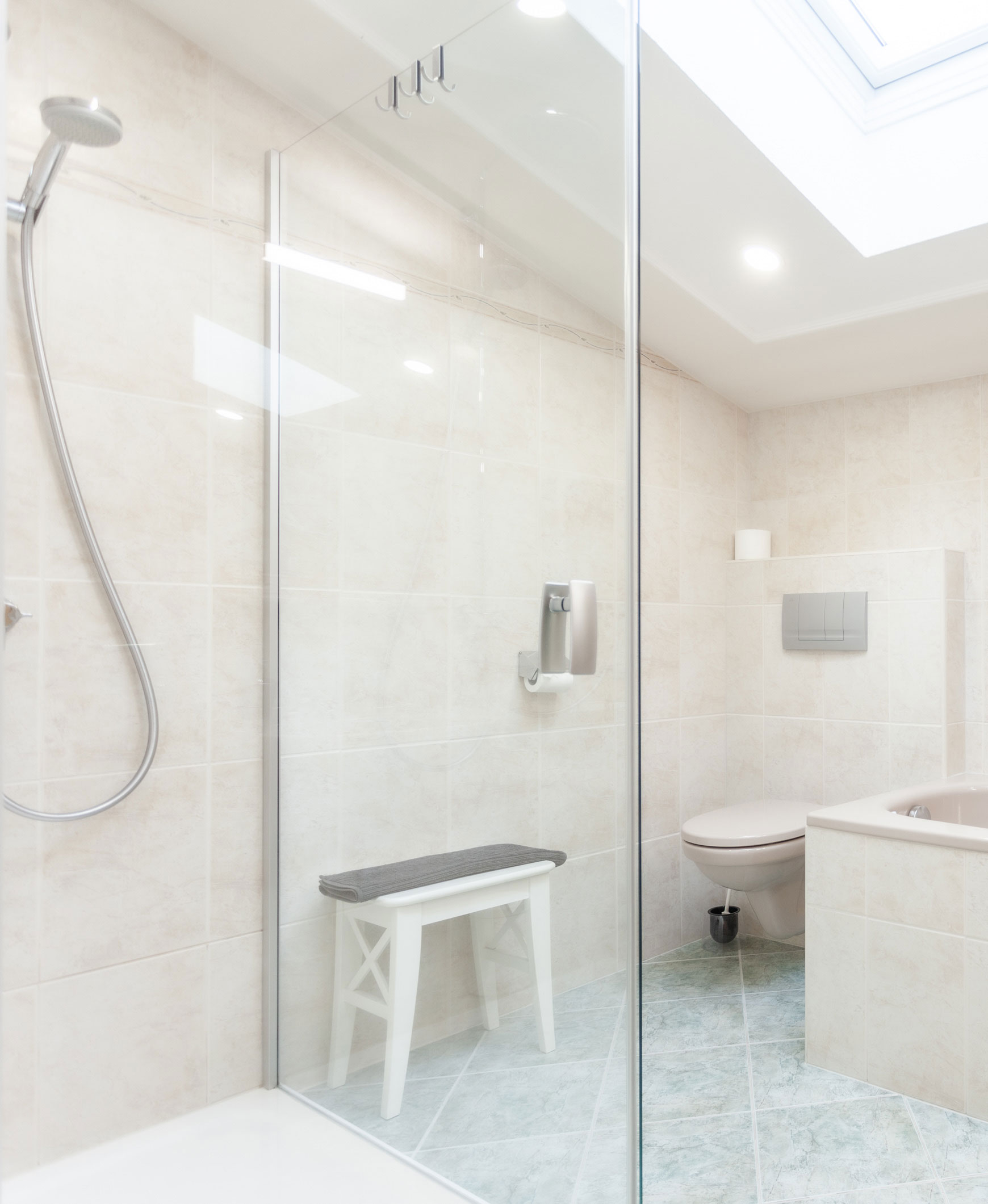 – Bad 2: Badewanne, Dusche, Doppelwaschtisch, WC, Pissoir